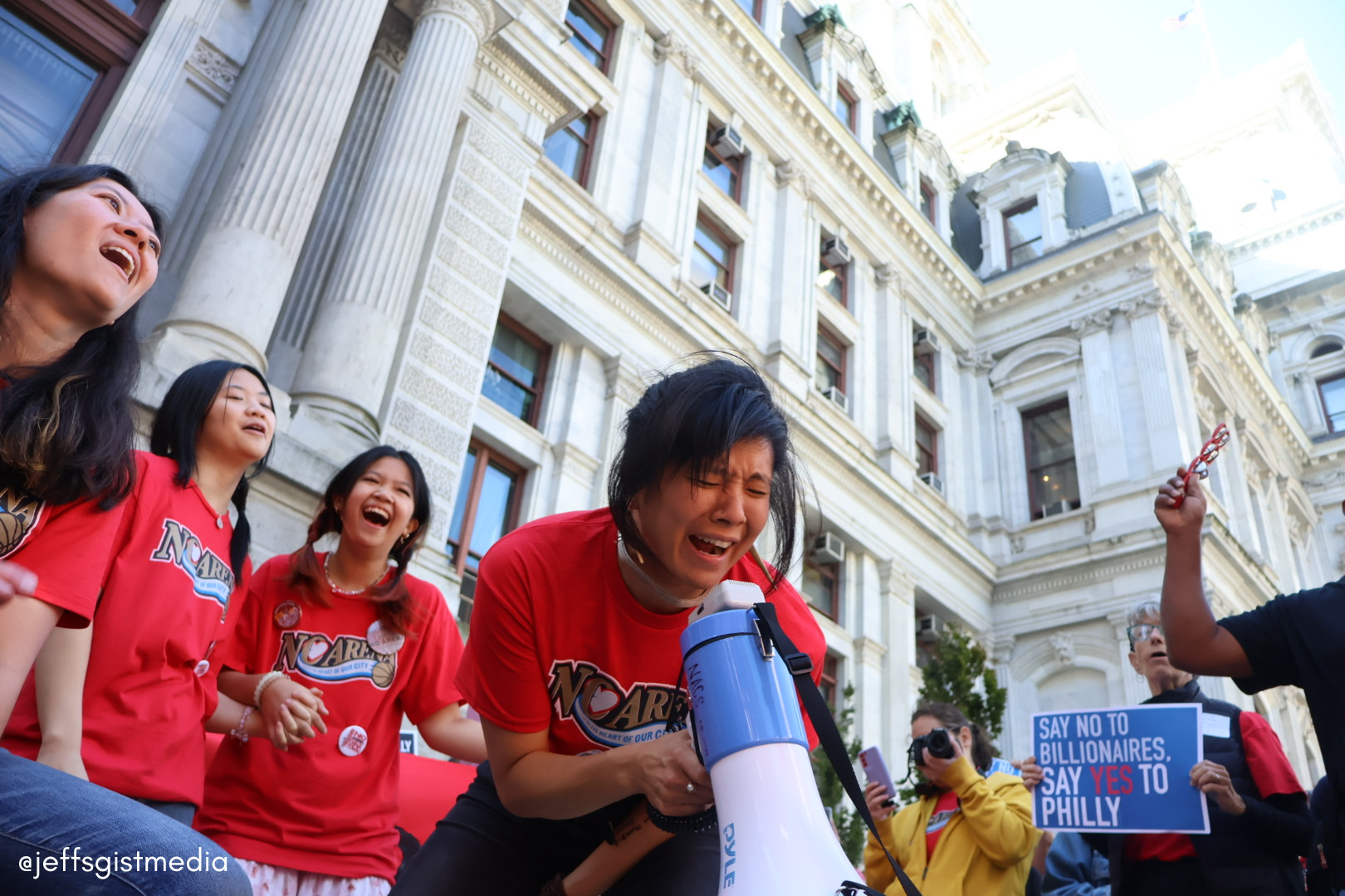 Mel is a co-leader of Philadelphia’s notorious No Arena Flash Chorus, a 100+ member force that brings fierceness and joy to the Save Chinatown Coalition’s fight against billionaire development.
